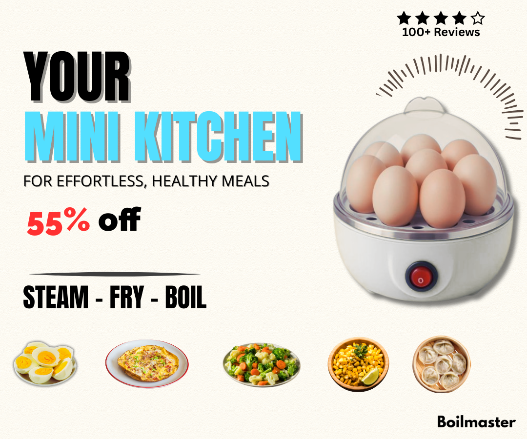 BoilMaster, Premium egg Boiler - For Steaming, cooking, boiling & frying. | 3 Boiling Modes | 7 eggs at once |